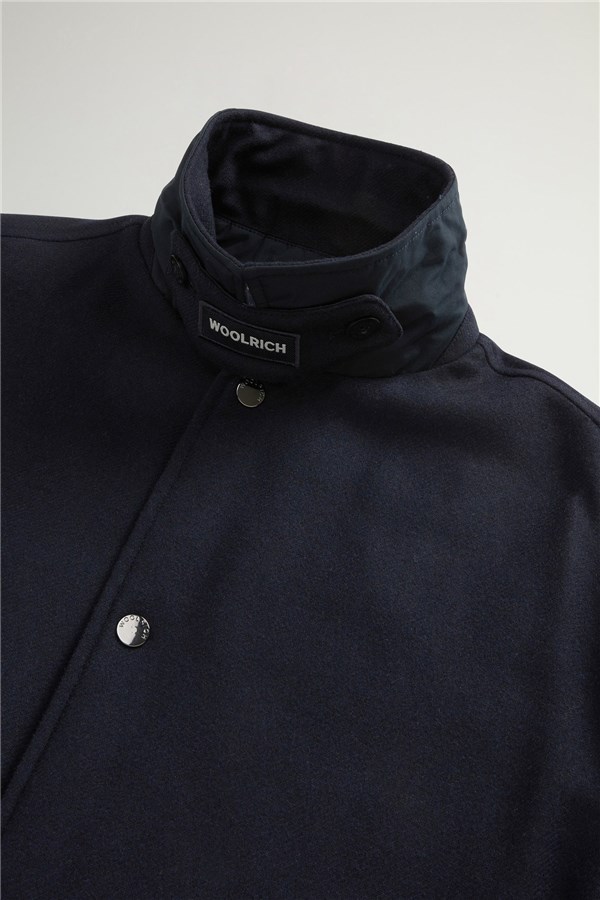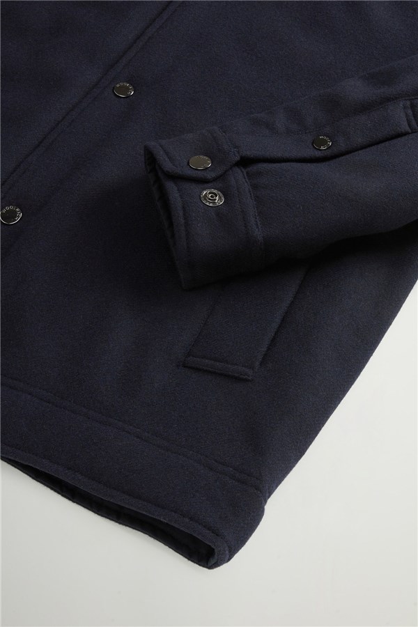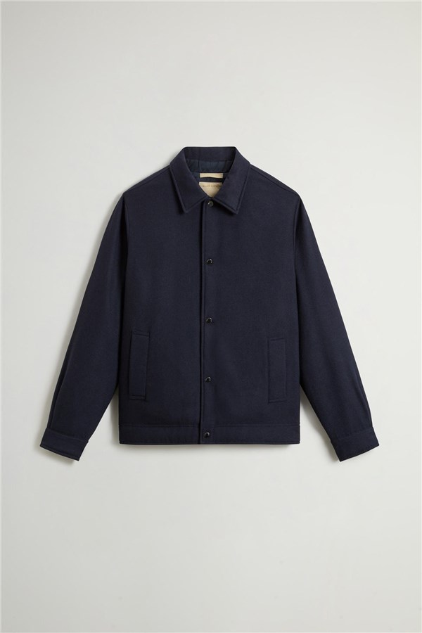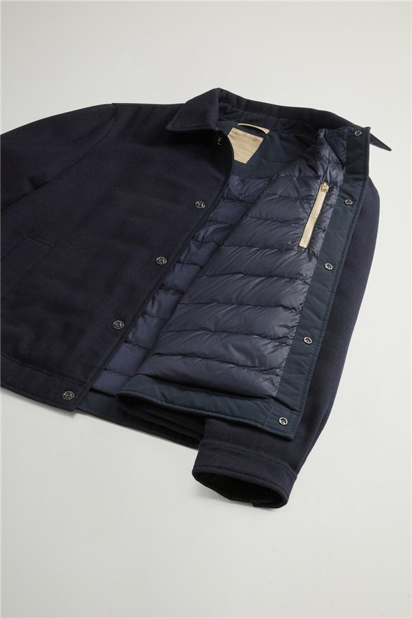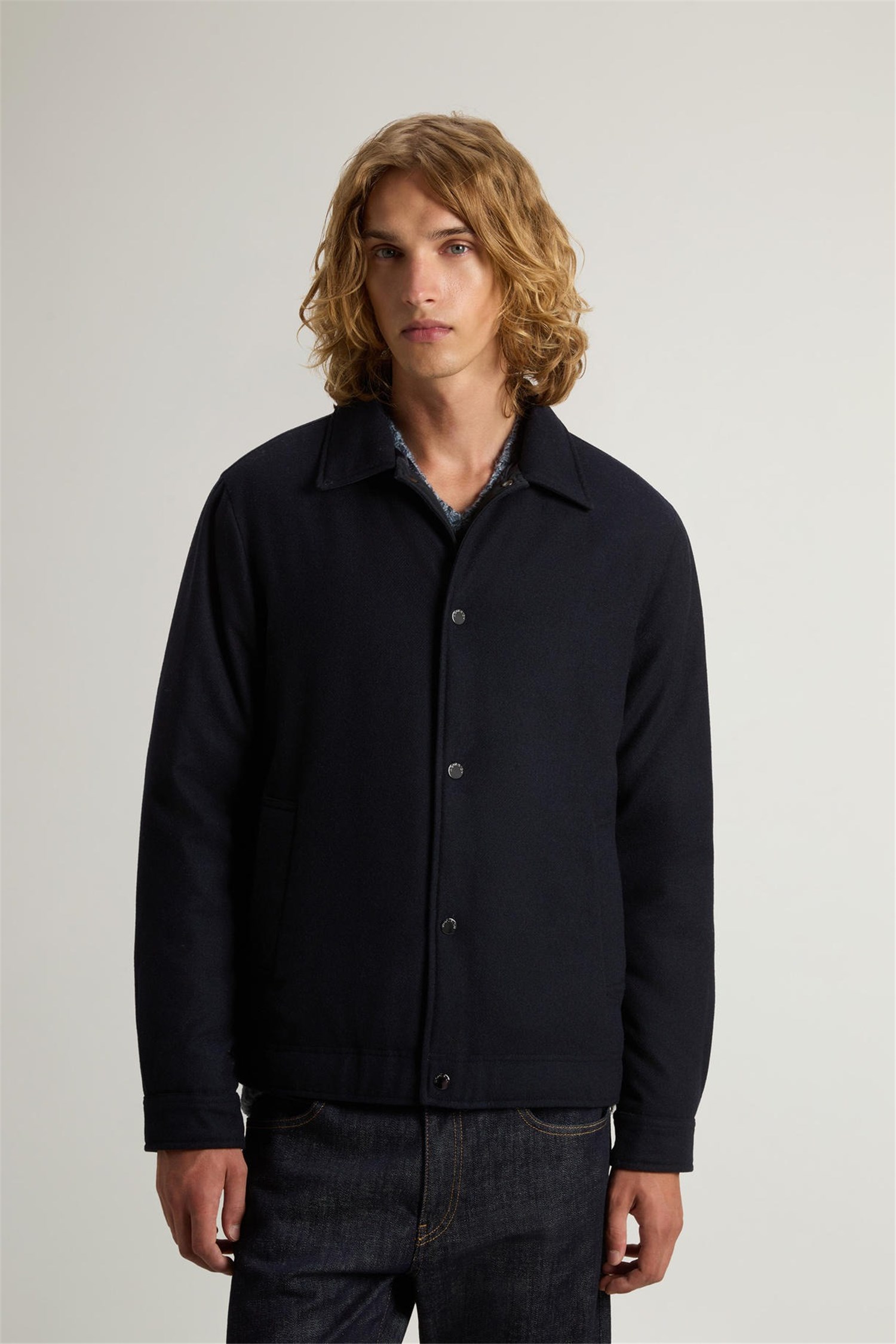 Dal design classico rivisitato in chiave funzionale, questa giacca a camicia è realizzata in misto lana italiana riciclata e imbottita in piuma d’anatra, per offrire calore e comfort senza appesantire. Il modello è dotato di colletto a camicia con linguetta rimovibile con logo, chiusura frontale con bottoni a pressione e regolazioni su vita e polsini per una vestibilità personalizzabile. Le tasche laterali a filetto con bottoni a pressione nascosti, insieme alla tasca interna con zip assicurano praticità e spazio sicuro per gli oggetti essenziali.