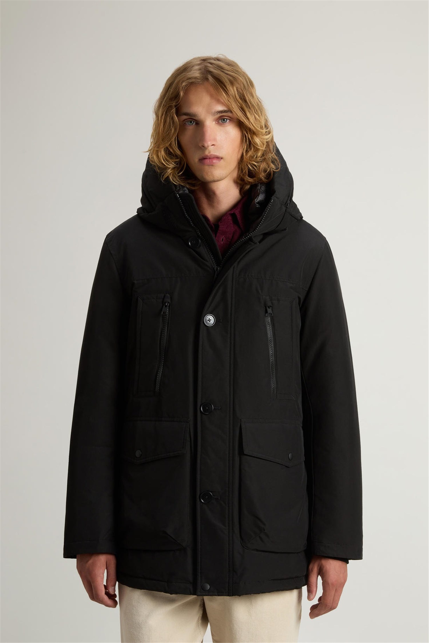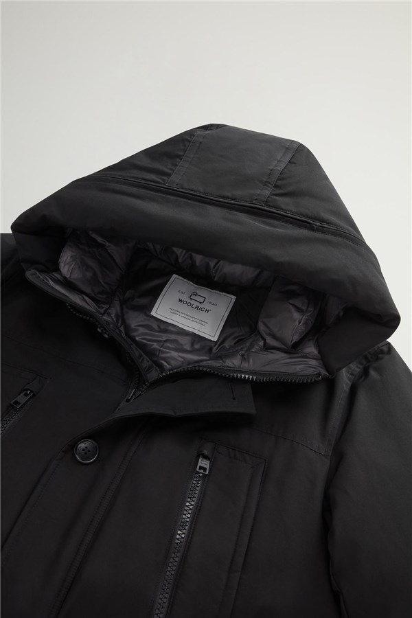 - Cappuccio con zip per mostrare scritta Woolrich o nasconderla