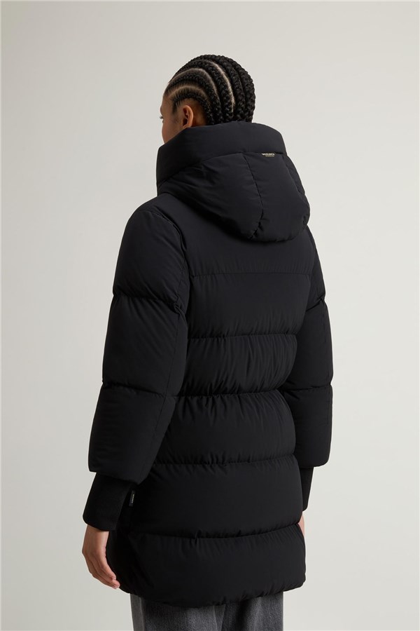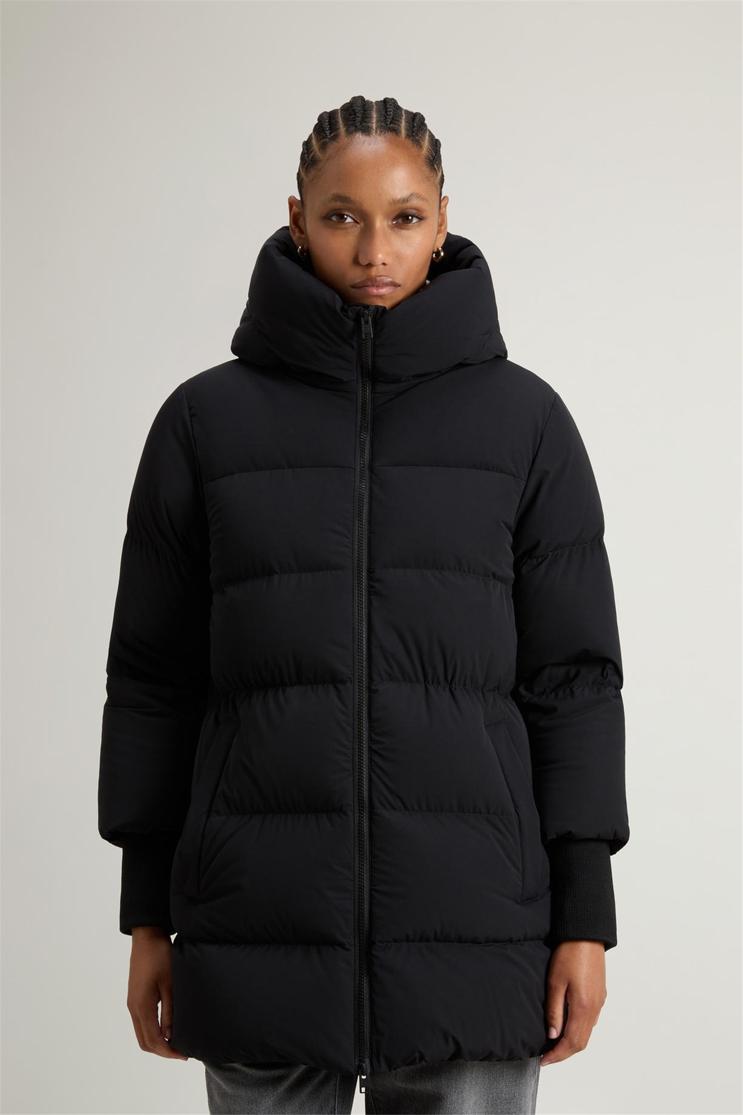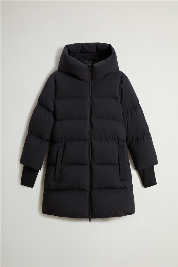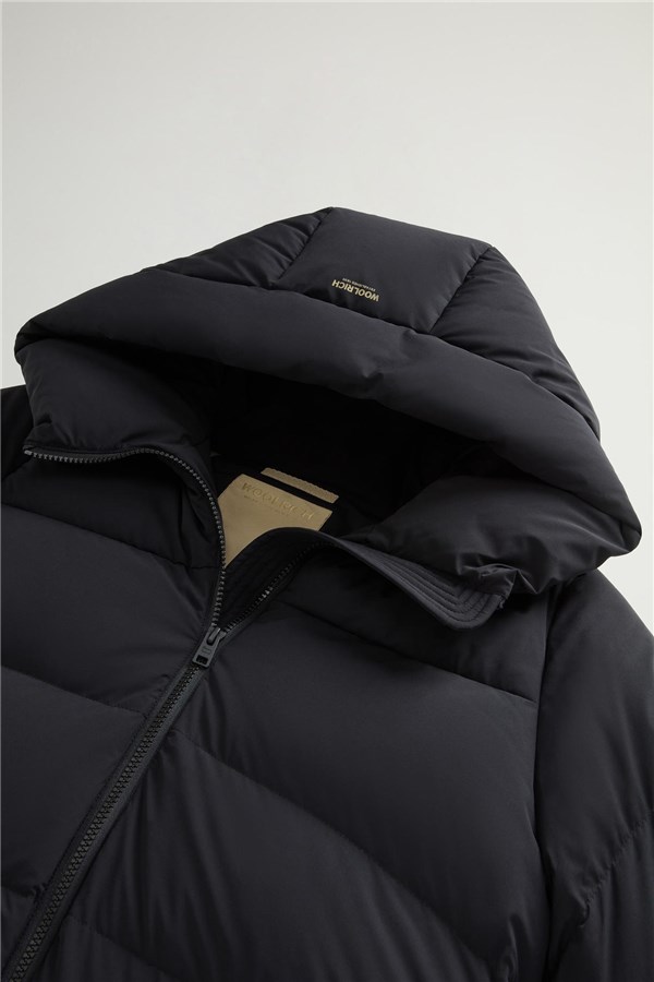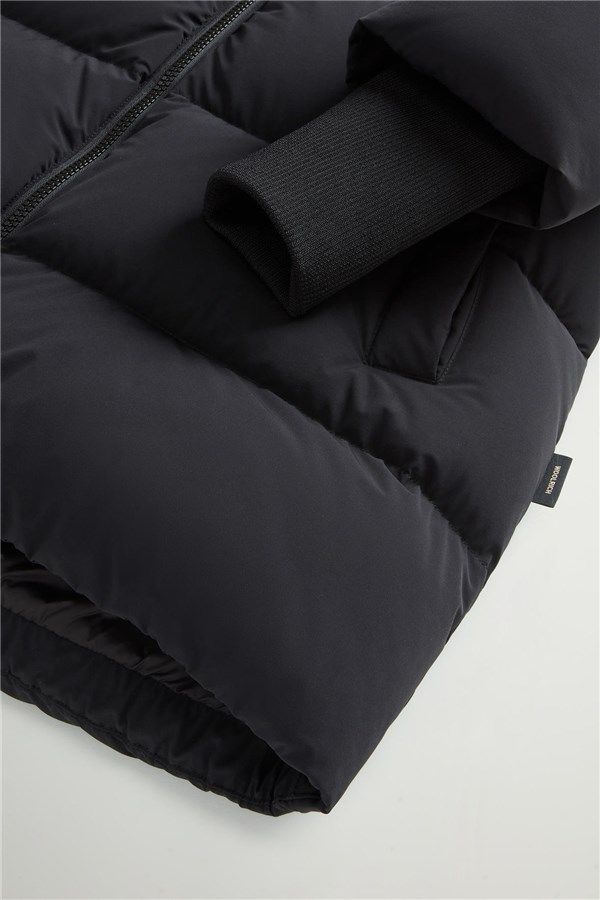 Pensato per le fredde giornate invernali, questo piumino è parte della nostra Cloud Series, la capsule di capispalla caldi ma leggeri come una nuvola. Realizzato in nylon elasticizzato e impreziosito da una finitura opaca, è resistente all’acqua e al vento ed è imbottito in morbida piuma d’anatra, garantendoti calore nei tuoi momenti all’aria aperta. Il modello presenta cappuccio per una protezione extra, chiusura bidirezionale, coulisse interna in vita e bretelle interne che permettono di portarlo in spalla quando si entra in luoghi chiusi. Le tasche laterali a filetto offrono un tocco di praticità, mentre polsini a costine ed etichetta laterale completano il design.